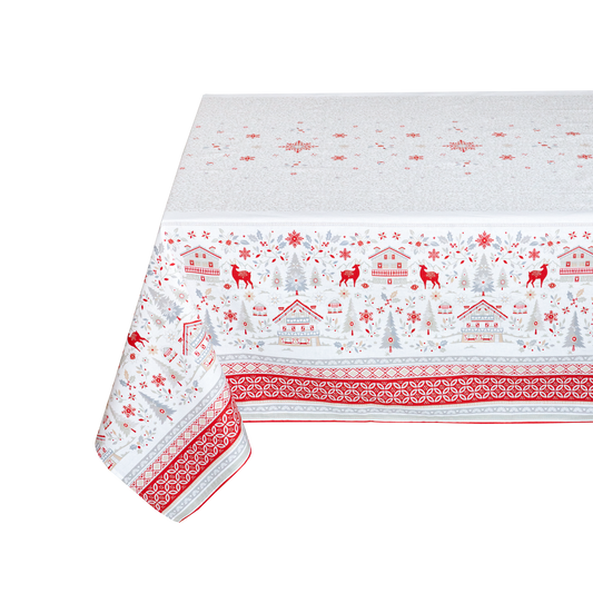 Cervin Red White Coated Tablecloth 60” X 120”