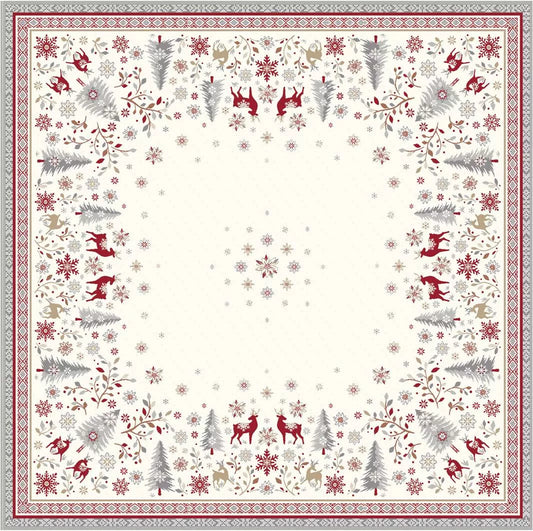 Christmas Square French Jacquard Table Cover 57” x 57” Holiday