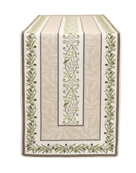 Auriol Olive Twigs Linen Green French Jacquard Table Runner