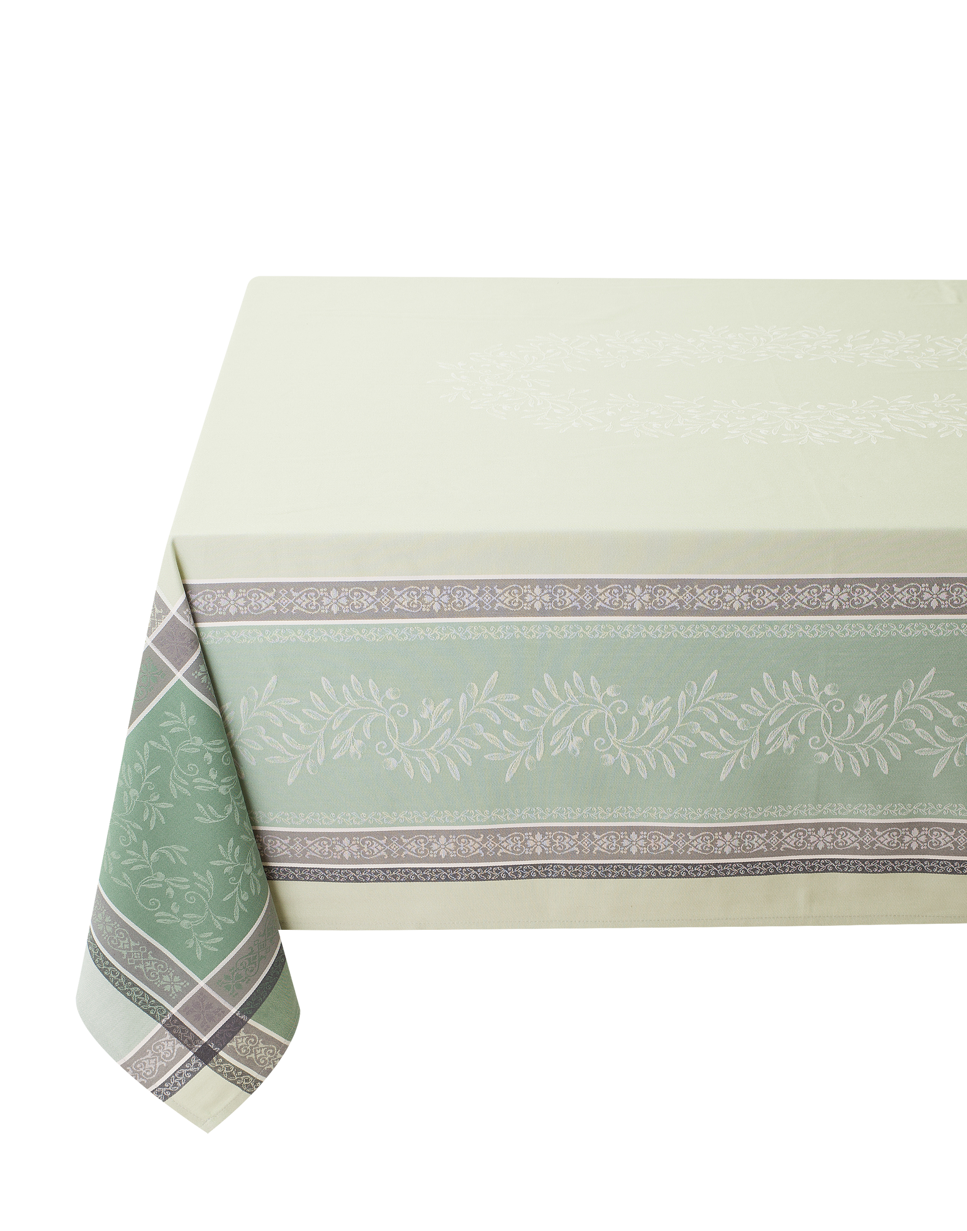 Olivia Green Jacquard Tablecloth (Water-Repellent)